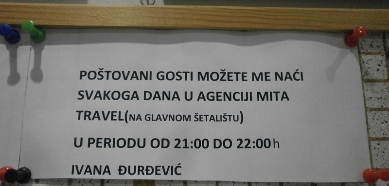Oglasne table se nalaze odmah levo i desno - za predstavnika naše agencije Ni travel je ova levo